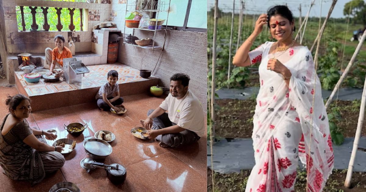 ही आठवण शेअर करत तिने कॅप्शन देत म्हटलं, “नानांनी खूप प्रेमाने बंगला बांधला आणि सगळ्यात मागे एक खोली काढली ती चुलीसाठी. बऱ्याचदा आम्ही जेवायला इथेच बसतो. पण मला वाटते आमच्या यात्रेला या खोलीचा सगळ्यात जास्त उपयोग होतो. हा फोटो मला फार आवडला कारण घरात मी मोठी असल्या कारणाने मी भाकरी करत आहे आणि माझी दोन्हीही लहान भावंडं म्हणजे जिजा आमच्या वकिलीनबाई व बद्रीशेट उद्योजक जेवणाचा आनंद घेत आहेत. त्यांच्याबरोबर आमचा राया”.