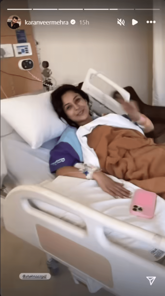 शहनाझला भेटल्यानंतर करनवीर मेहरा यांनी इन्स्टाग्रामवर एक कथा शेअर केली. या पोस्टमध्ये तिने आपल्या आरोग्यास अद्यतन दिले आहे. करणवीर मेहरा म्हणाली, “म्हणून मला तुम्हाला विनंती करायची आहे की, तिच्यासाठी प्रार्थना करा. ती पूर्ण उर्जेने लवकरात लवकर बरे व्हावी”. यानंतर, त्याने आपला कॅमेरा शहनाझ गिलकडे वळविला, जी रुग्णालयात पलंगावर झोपलेली दिसली.